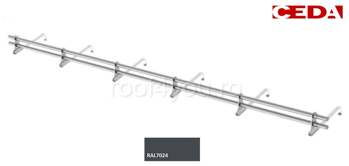 Pachet parazapada bara din otel prevopsit de 360 cm este conceput pentru acoperisuri din tigla, cu tigla de format mare - de pana la 52cm. Barierele de zăpadă sunt folosite pentru a preveni alunecarea zăpezii de pe acoperiș.